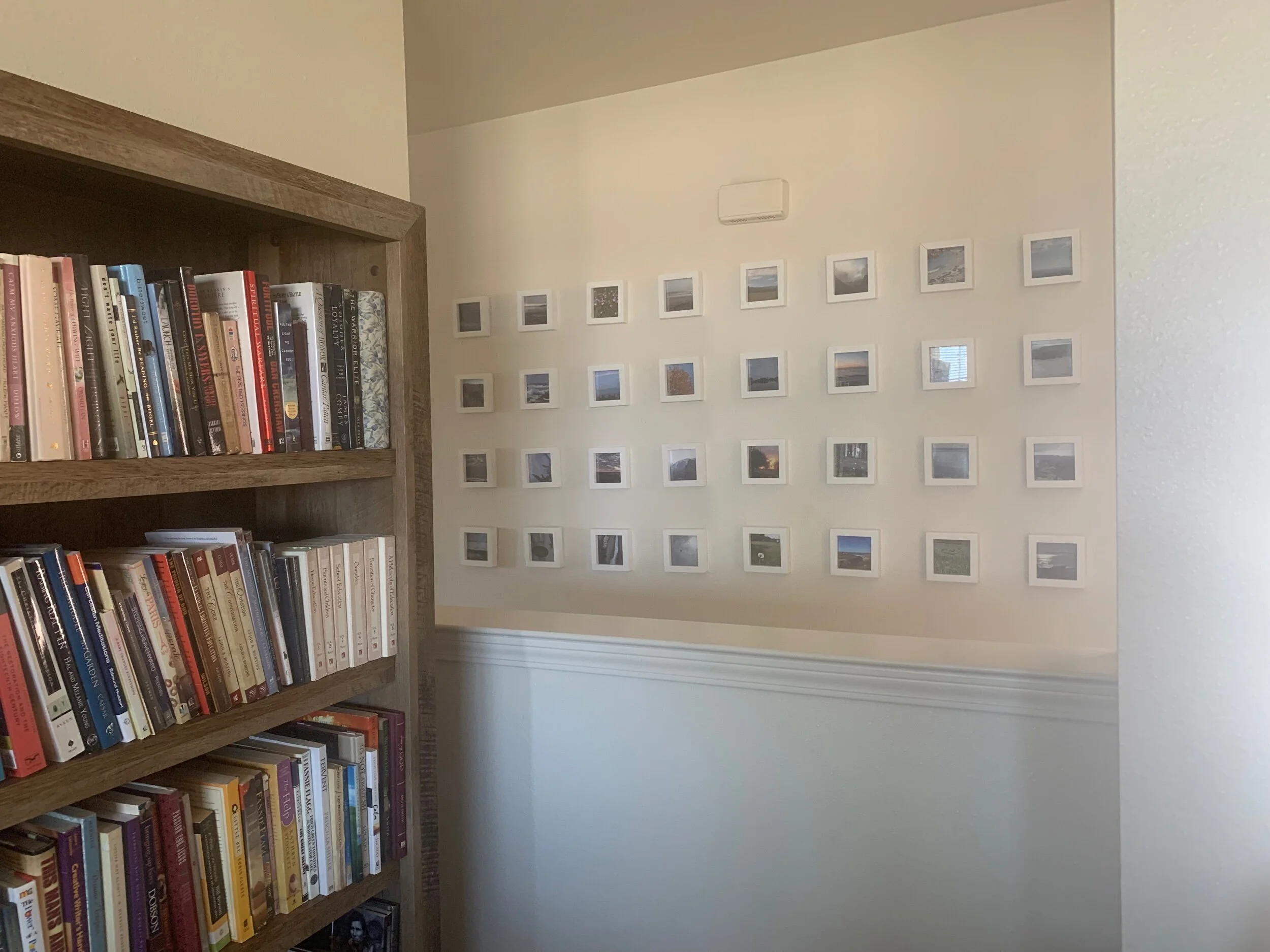 Nothing says “perfectionist” quite like hanging 24 identical white frames in a grid pattern on a wall.